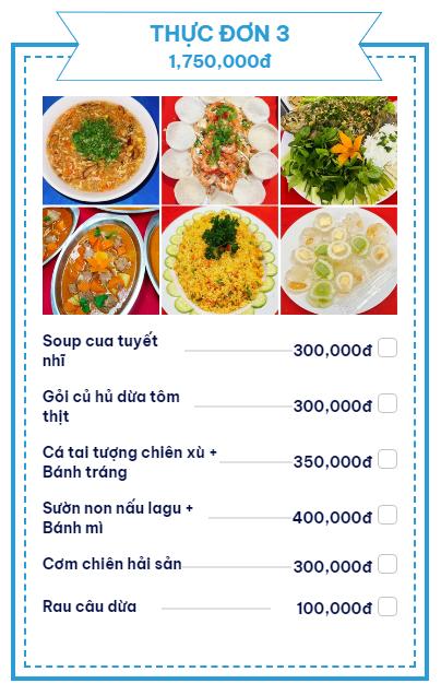 Giá trên mỗi bộ thực đơn đãi tiệc đã bao gồm bàn ghế, dụng cụ ăn uống, nhân viên phục vụ và phí vận chuyển (áp dụng khi quý khách đặt từ 4 bàn trở lên và trong nội thành thành phố Hồ Chí Minh). Nếu quý khách đặt dưới 4 bàn, Naifood vẫn sẽ cung cấp trọn gói đầy đủ dụng cụ ăn uống, bàn ghế, nhân viên phục vụ, nhưng Naifood sẽ phụ thu từ 300.000đ – 500.000đ tiền vận chuyển 2 chiều, tùy vào từng khu vực bạn muốn tổ chức tiệc.
